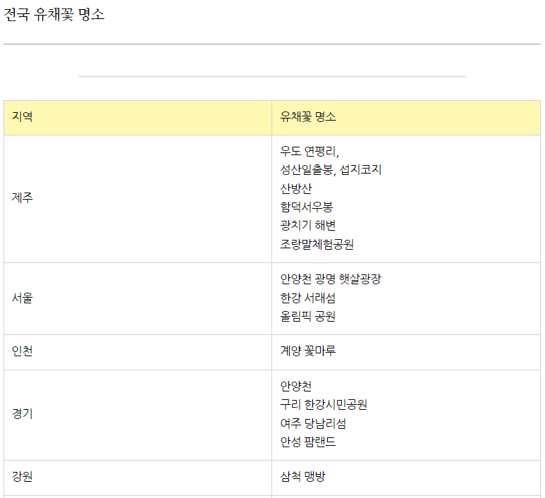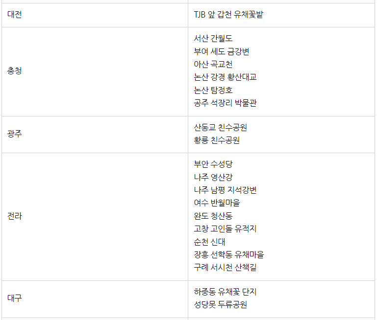 1. 주요 유채꽃 축제 리스트업